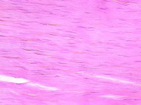 Tendon, which is a strap like body that connects bone to muscle, is made of dense regular connective tissue. You can find an example in slide 9. The fibers are oriented in parallel arrays. Note the thin, dark staining nuclei of the fibroblasts. Their cytoplasm cannot be distinguished. How does the arrangement of the fibers help a runner sprint or a kangaroo jump?