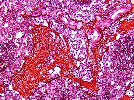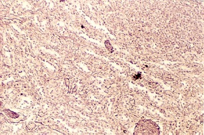 Loose connective tissue is also filled with reticular fibers which are fine fibers used for support. The following photos show regions from the spleen with reticular fiber stains. Note the fine bundles of fibers stained black. They help to provide the structural support for the cells and vessels in the loose connective tissue..