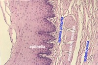 The following photo shows a better view of the lamina propria which is the core of the villi. Strands of smooth muscle, vessels, and numerous cells typical of connective tissue are found in this region.