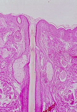 your slide set. The right hand photo shows the hair going up to the epidermis. You can see