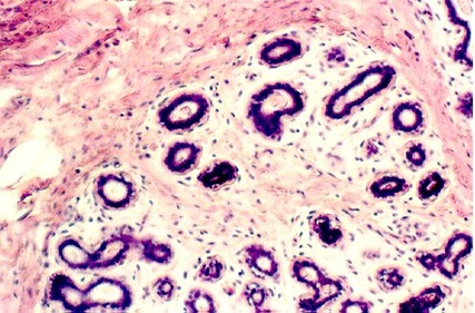 Mammary glands are essentially modified sweat glands. So many of the same structures that you studied in the above exercise will be found. However, in this exercise, we will be studying lactating and non-lactating mammary glands. You will learn to distinguish the two.